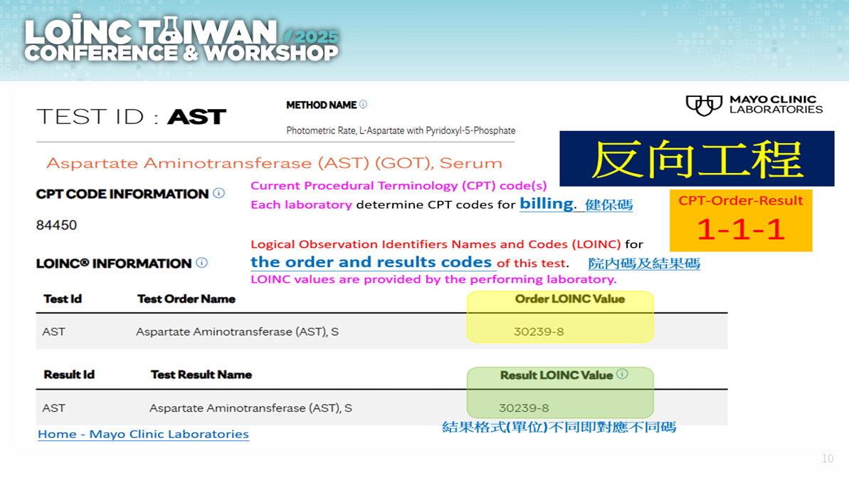 圖一、臺灣臨床病理暨檢驗醫學會 / 林口長庚醫院檢驗醫學部 闕宗熙 教授/主任醫師-LOINC臨床應用觀點