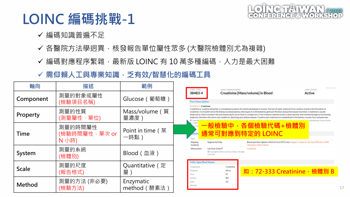 圖八、LOINC編碼挑戰:六軸向對應與實務困境