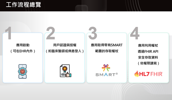 - 無縫的體驗:SMART on FHIR 的四大支柱包含 FHIR、OAuth 2.0、OpenID Connect,以及 UX 整合(in-frame 內嵌與單一登入 SSO)。這使得 App 不必跳脫 EHR 另開視窗,可直接在原系統畫面中運作。